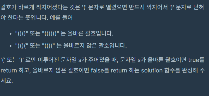 괄호로 이루어진 문자열이 들어왔을 때 ')'는 항상 '('가 나온 이후에 나와야한다