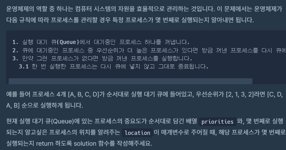 프로세스의 우선순위가 들어간 배열과 원하는 프로세스의 index가 주어지고