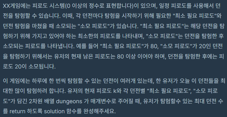 public int solution(int k, int[][] dungeons) {