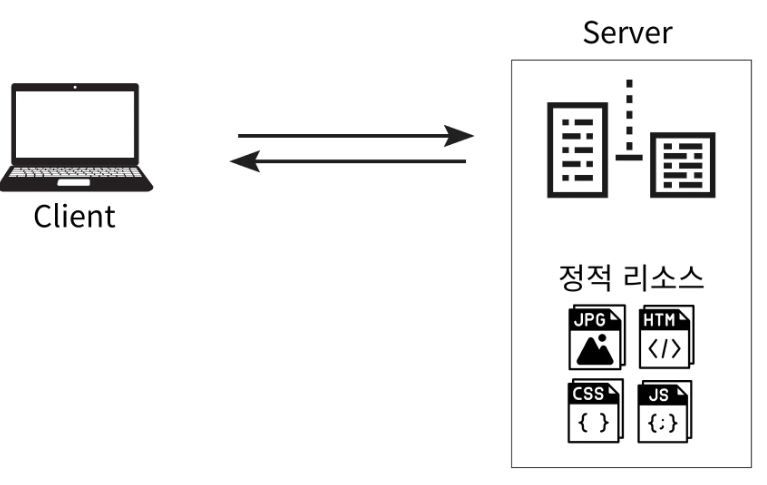 - 정적 리소스: 변경 없이 그대로 반환되는 파일 (HTML, CSS, JS, 이미지 등).